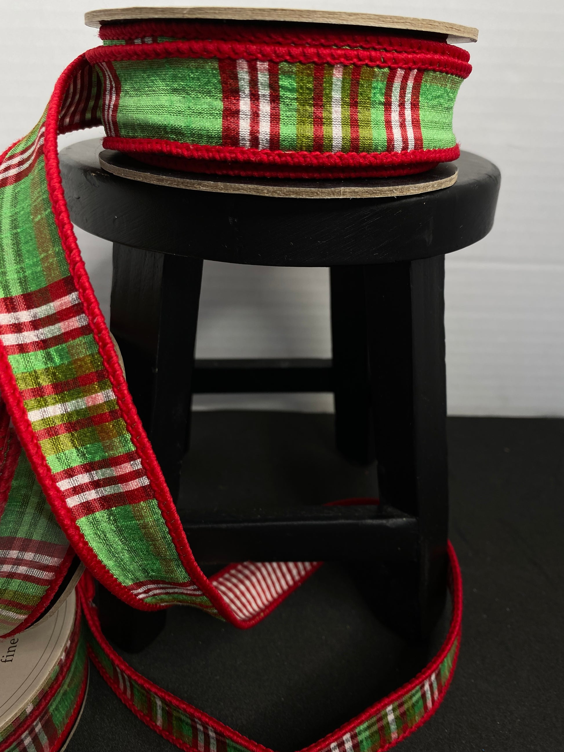Are we at the North Pole? This cute ribbon is 1”x10yds faux dupion in a pink-green- red check!